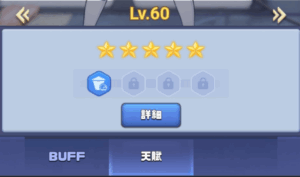 ☆が最大の5になると、天賦が解放されます。LVは関係なしです。