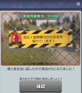 ・☆5任務が出て感度が1に戻ったら、任務を空にして暗黒軍団を侵入させ撃退する